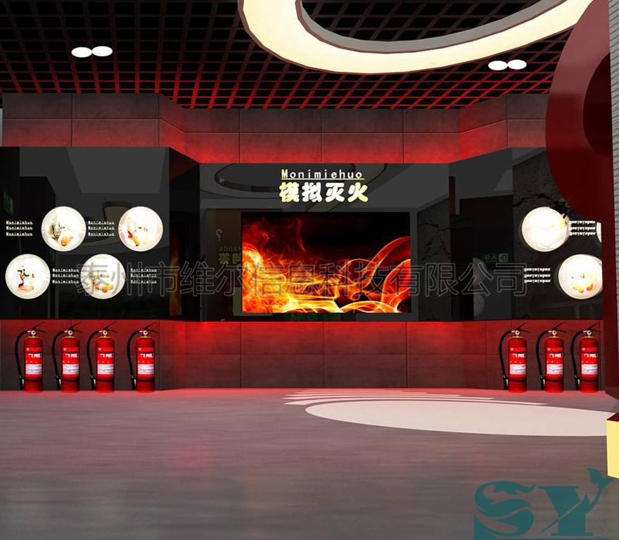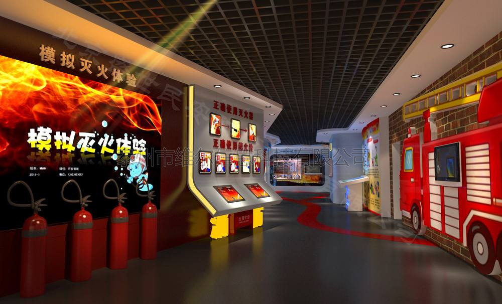 模擬滅火系統軟件采用大屏幕顯示模擬滅火系統界面,用戶可通過滅火互動臺選擇要模擬的類容,可選擇滅火知識培訓、滅火體驗和知識問答的模擬畫面。在滅火體驗中主要是播放常見的(辦公場地火災、電器火災、廚房火災、木材廠火災)等火災場景,演練者選擇正確的滅火器,拔掉插銷,對準“大火根部”,按下鴨嘴閥,判斷系統通過傳感器得到滅火器的噴射角度和噴射時間,大火在滅火器噴射下漸漸熄滅,畫面顯示滅火成功,否則火越來越大的情況,顯示滅火失敗。演練者通過滅火演練,學習滅火知識及發生火災時應采取的有效措施。 模擬滅火有8種不同的場景可供選擇,體驗者可通過互動裝置臺選擇場景,進入場景后開始選擇適合場景的滅火器,畫面會出現文字提醒選擇滅火器的操作方法;如果選擇錯誤的滅火器滅火,畫面火勢會變大,隨后,畫面切到人物被燒傷的動漫告訴別人不要學習他。選擇正確的滅火器后,體驗者開始移動滅火器,使紅外對準火苗移動,火勢逐漸熄滅。(如果在一定時間內沒有準確定位火苗位置火勢會變大且提示再次選擇) 場景一 客廳沙發突然起火 場景描述:畫面展示了一座典型的家庭房間,由一個很小的火源導致沙發起火,同時用文字提醒此類為a類固體火災請選擇滅火器,參觀者正確選擇并拿起按下滅火器,一道紅外的光好像從水管末端射出來,對準火苗根部來回移動滅火器,直到火被完全撲滅。 適合此場景滅火器有:干粉滅火器,泡沫滅火器,清水滅火器。 場景二 木材廠的木材突然起火 場景描述:畫面展示了一所典型的木材廠環境,由于未熄滅的煙頭引發廠房發生火災,同時用文字提醒此類為a類含碳固體火災提示選擇滅火器,參觀者正確選擇并拿起按下滅火器,對準火苗根部來回移動滅火器,直到火被完全撲滅。 適合此場景滅火器有:泡沫滅火器,清水滅火器。 場景三 廠區內一輛汽車在燃燒 場景描述:畫面提示廠區一輛汽車因汽油泄漏引發火災。一廠區類的某汽車正在漏油,一年輕小伙將未熄滅的煙頭丟落在油面上引起火災,同時用文字表明此類為b類油品火災提醒選擇滅火器,參觀者正確選擇并拿起按下滅火器,對準火苗根部來回移動滅火器,直到火被完全撲滅。 適合此場景滅火器有:干粉滅火器,二氧化碳滅火器(因為汽車火災不僅是油品火災還伴隨著電器火災) 場景四 油浸電力變壓器引發火災 場景描述:畫面提示某廠房一油浸電力變壓器過載引發火災。一廠房油浸電力變壓器由于電壓過載發生故障導致,在箱體最薄弱處引發燃燒,同時用文字表明此類為b類油品火災提醒選擇滅火器,參觀者正確選擇并拿起按下滅火器,對準火苗根部來回移動滅火器,直到火被完全撲滅。 適合此場景滅火器有:干粉滅火器,二氧化碳滅火器(泡沫滅火器可用來撲滅地面上的油浸) 場景五 臥室電器起火 場景描述:畫面展示了室內電視機電路短路,電路迸射出火花,然后開始燃燒,同時用文字提醒此類為d類電器火災請選擇滅火器,參觀者正確選擇并拿起按下滅火器,對準火苗根部來回移動滅火器,直到火被完全撲滅。 適合此場景滅火器有:干粉滅火器,二氧化碳滅火器。 場景六 辦公室電路板起火 場景描述:畫面展示了辦公室內的一個電路板過載,電路迸射出火花,然后開始燃燒,同時用文字表明此類為d類電器火災提醒選擇滅火器,參觀者正確選擇并拿起按下滅火器,對準火苗根部來回移動滅火器,直到火被完全撲滅。 適合此場景滅火器有:干粉滅火器,二氧化碳滅火器。 場景七 家庭廚房起火 場景描述:畫面展示了一座典型的廚房環境。由于未關閉廚房燃氣灶導致起火,同時用文字提醒此類為c類可燃性氣體火災請選擇滅火器,參觀者正確選擇并拿起按下滅火器,對準火苗根部來回移動滅火器,直到火被完全撲滅。 適合此場景滅火器有:干粉滅火器,二氧化碳滅火器,清水滅火器。 場景八 化學實驗室起火 場景描述:畫面展示某化學實驗室由于酒精燈傾倒引發實驗室火災,同時用文字提醒此類為b類水溶性液體火災請選擇滅火器,參觀者正確選擇并拿起按下滅火器,對準火苗根部來回移動滅火器,直到火被完全撲滅。 適合此場景滅火器有:干粉滅火器,二氧化碳滅火器 如果5分鐘內無人操作時,返回待機界面.